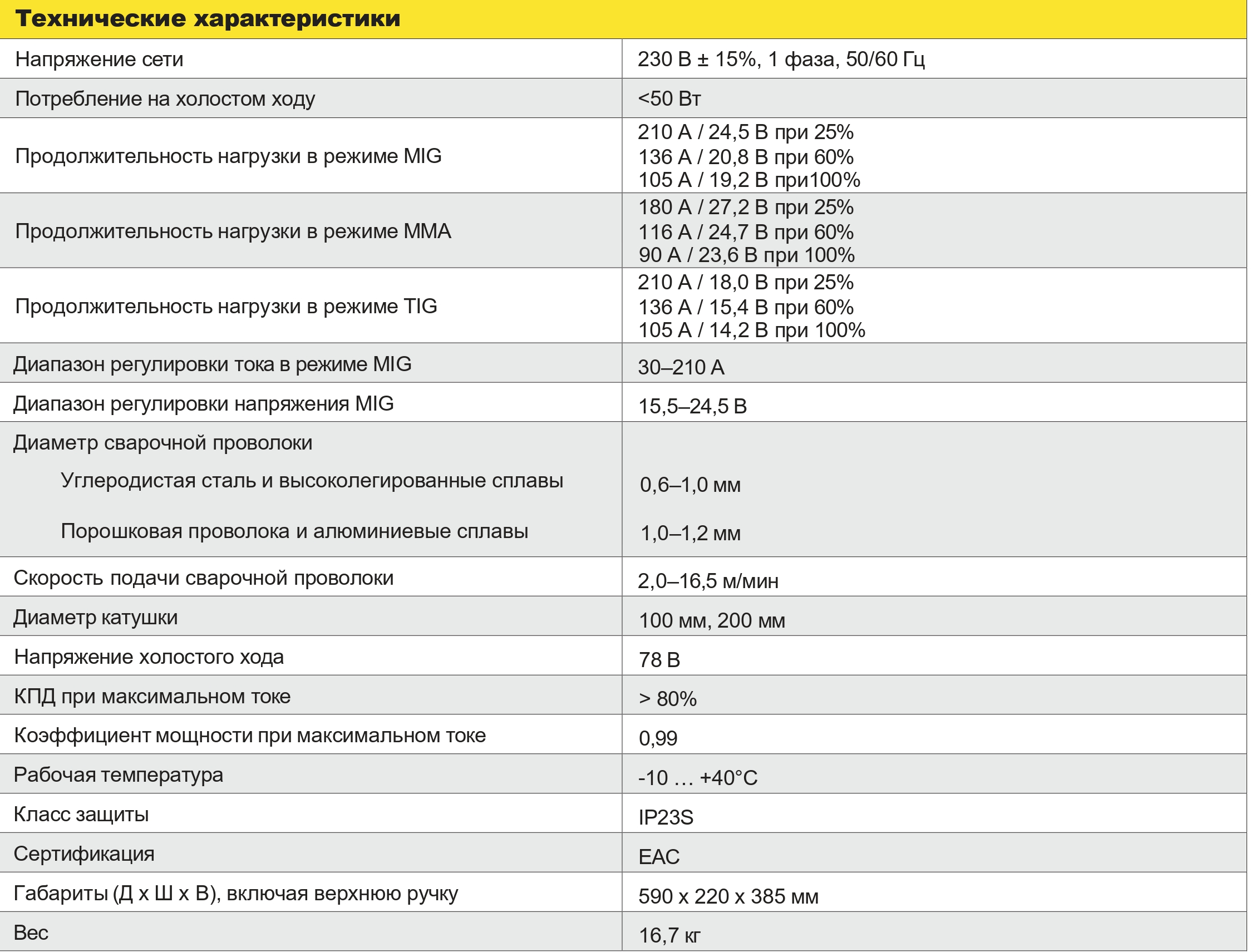 Коррекция коэффициента мощности (PFC) – обеспечивает стабильную дугу, устойчивую к колебаниям сетевого напряжения, даже при работе с удлинителями длиной до 100 м